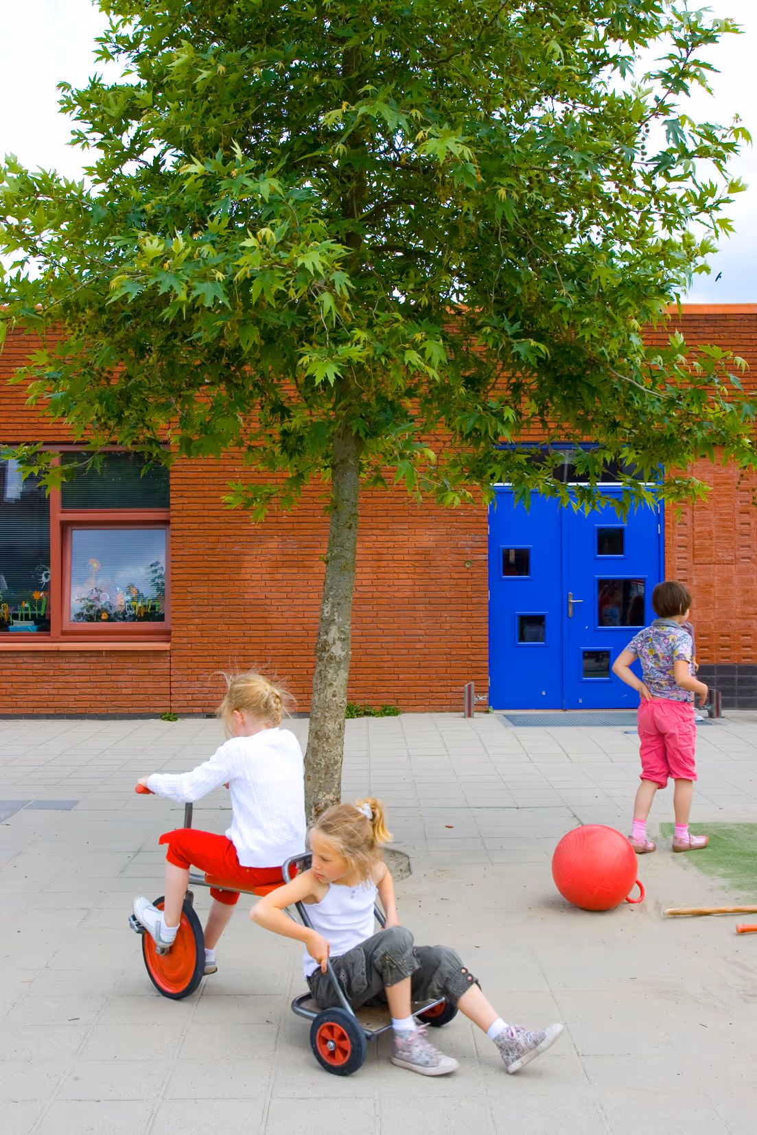 The starting point of each school was the central hall, the heart, where the specific identity of that school can be expressed. This central hall consists of part of the auditorium, the central staircase and a large playroom. Linking these not only creates a spatially exciting composition, but also a multifunctional place for theme parties, school theater and Sinterklaas celebrations.