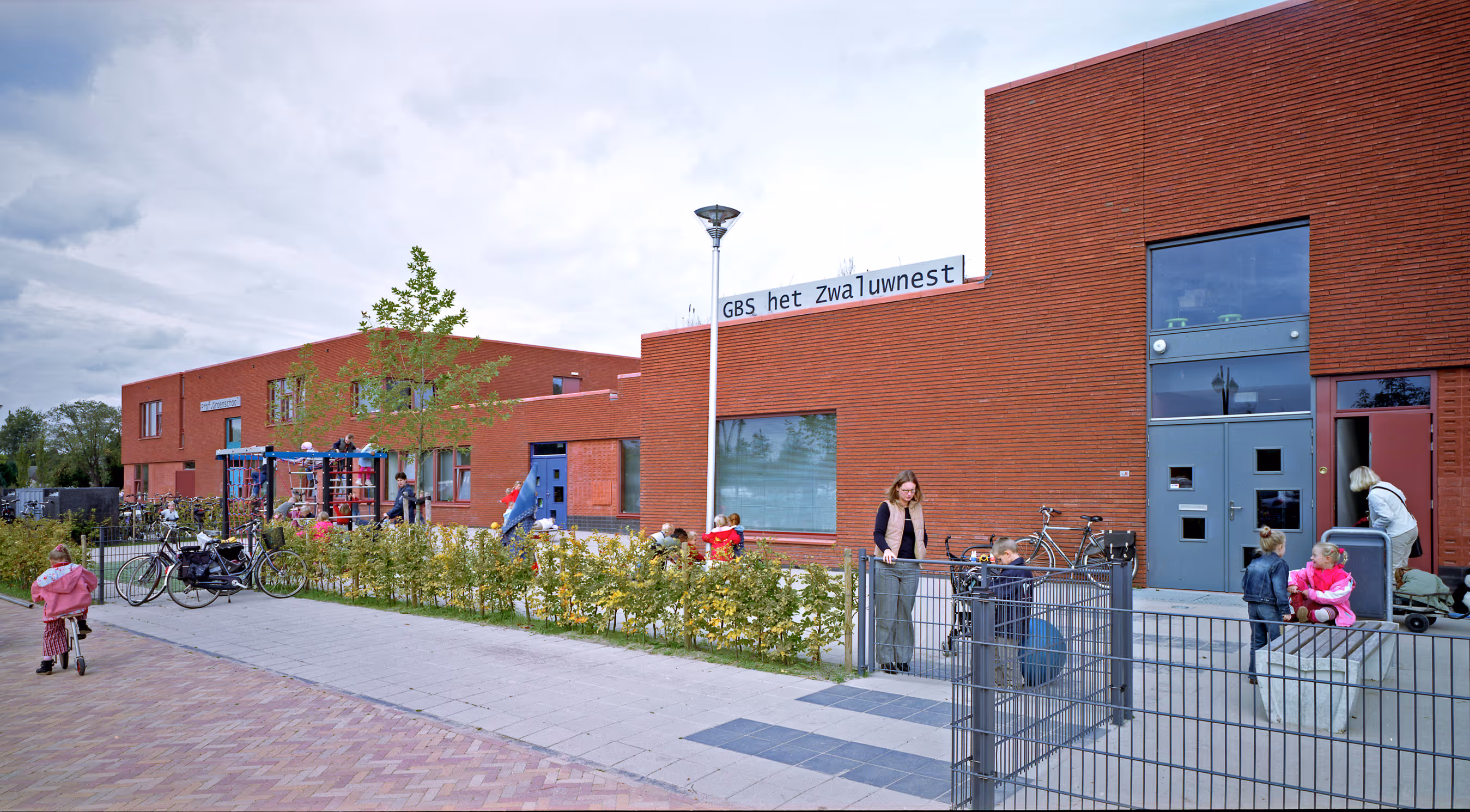 Atelier PRO and SVP architects worked closely together to design the educational and leisure facilities as a single complex, with atelier PRO designing the four primary schools - one on a Catholic and a Reformed basis, one for the deaf & hard of hearing and one for special education - and SVP architects the middle block of leisure facilities - consisting of a daycare center, a community center and sports facilities.
