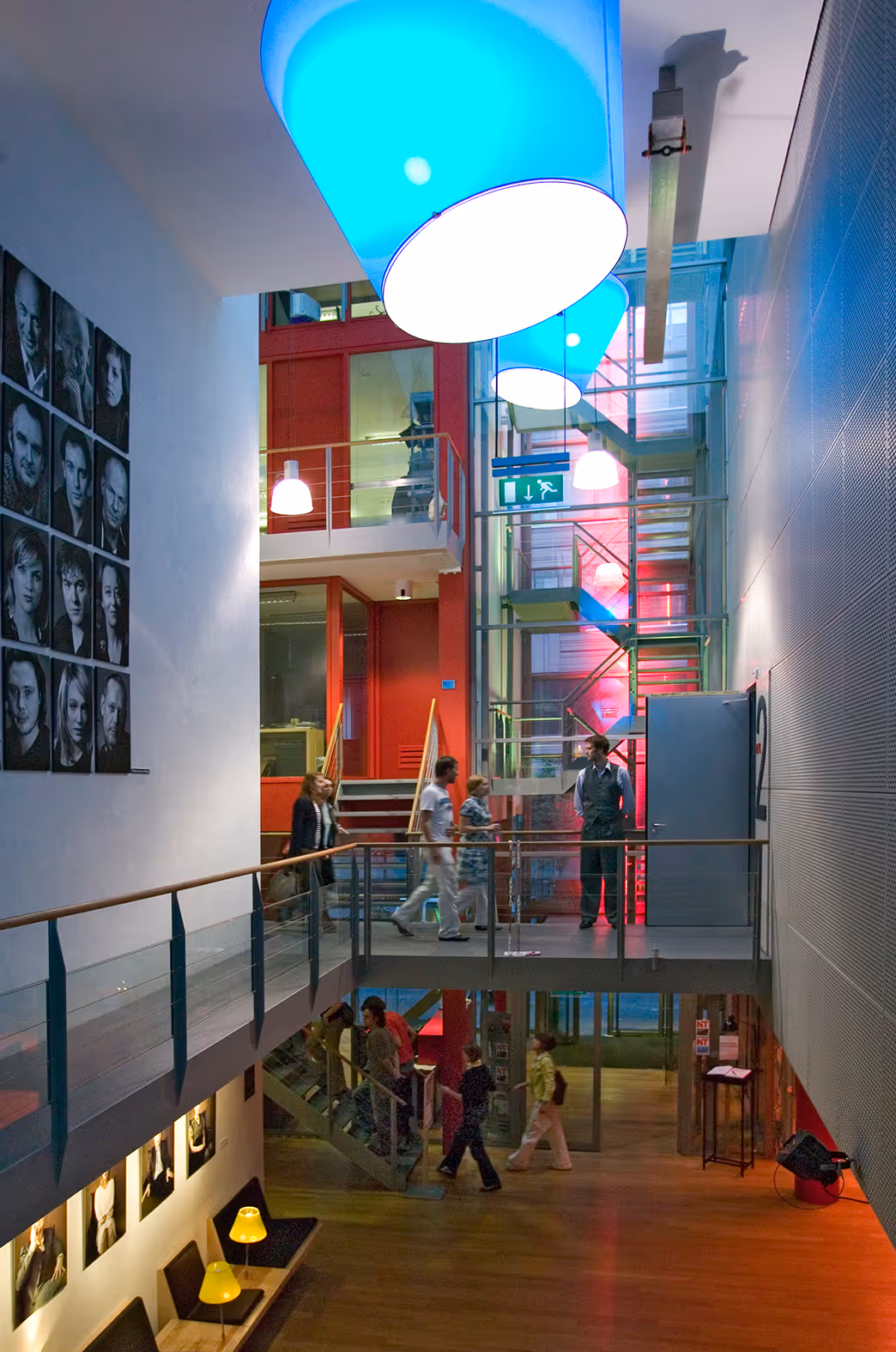 The National Theatre was festively opened in 2008 by their Royal Highnesses Prince Constantine and Princess Laurentien. Since the merger with the Koninklijke Schouwburg and Theater aan het Spui in 2017, the spaces in the new building have been used as HNT Studios.