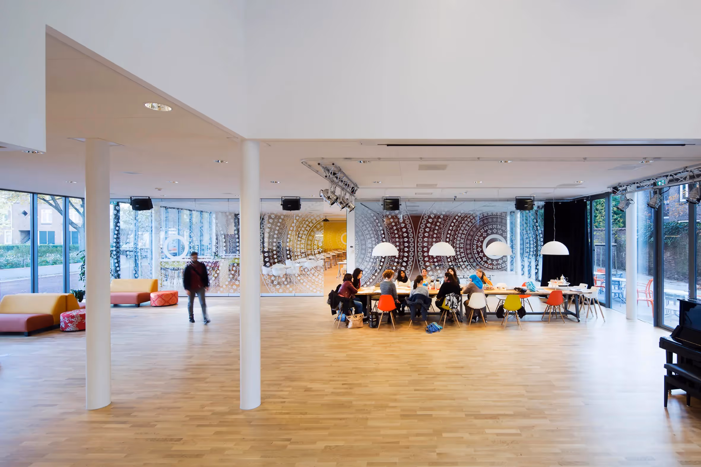 It is in this context that Child Center O3 was set up. The initiator was an enthusiastic, ambitious director who wanted to transform a low-ranked primary school into a qualitative and challenging learning environment: a socially mixed community school where children can learn, play, exercise and develop, where their parents can go for support, and where all generations feel at home. This coincided with the ambitions of the municipality and housing corporation Haag Wonen, driving forces behind the transformation of the Rivierenbuurt. This is how a school was created that is more than just a school, but a living room for the neighborhood.