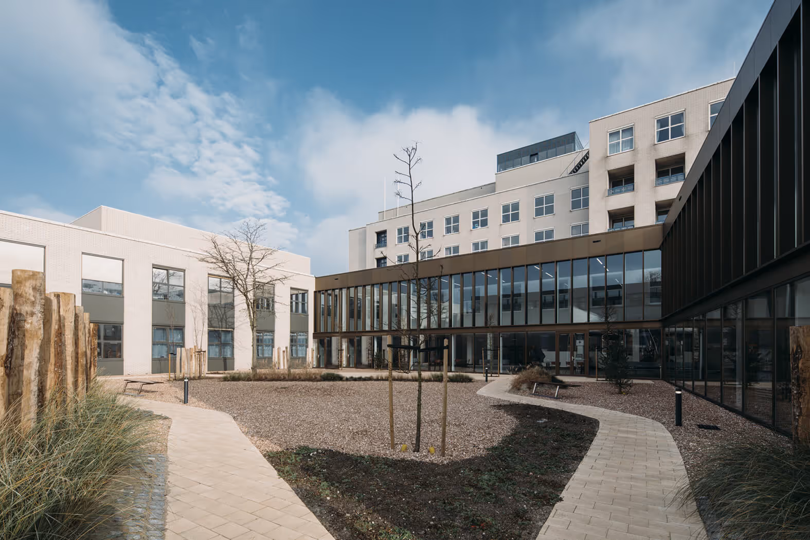 The garden is the green gateway to the renovated hospital and the existing ZRTI radiotherapy center.