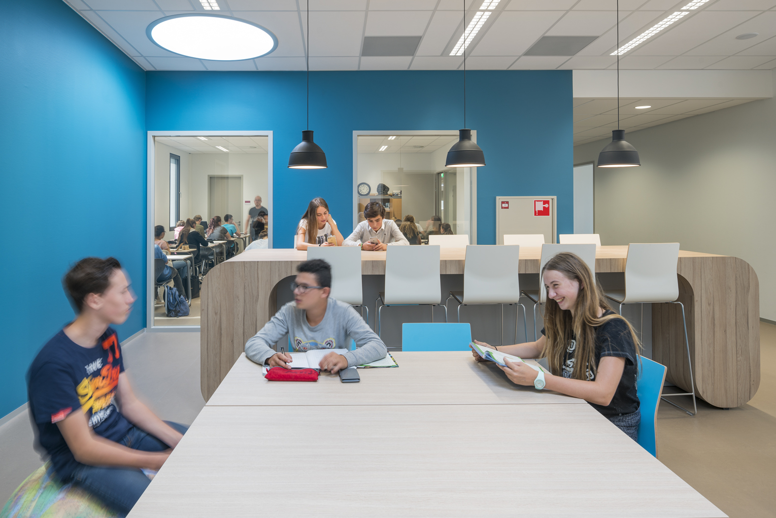 In de nieuwbouw is een centrale kern waarin beide scholen functies delen zoals bijvoorbeeld een centrale administratie, een gemeenschappelijke keuken, een grote gemeenschappelijke teamruimte en twee aula’s die in elkaar overlopen. De beide scholen zijn in feite vriendschappelijke buren. Daarnaast zijn er diverse onderwijsruimten die door beide scholen gebruikt worden: bv kunst- & cultuurruimtes, en technieklokalen. Mogen er in de toekomst andere inzichten en/of onderwijsvisies in deze zijn, dan zal het complex ook als één gebouw zijn te gebruiken.