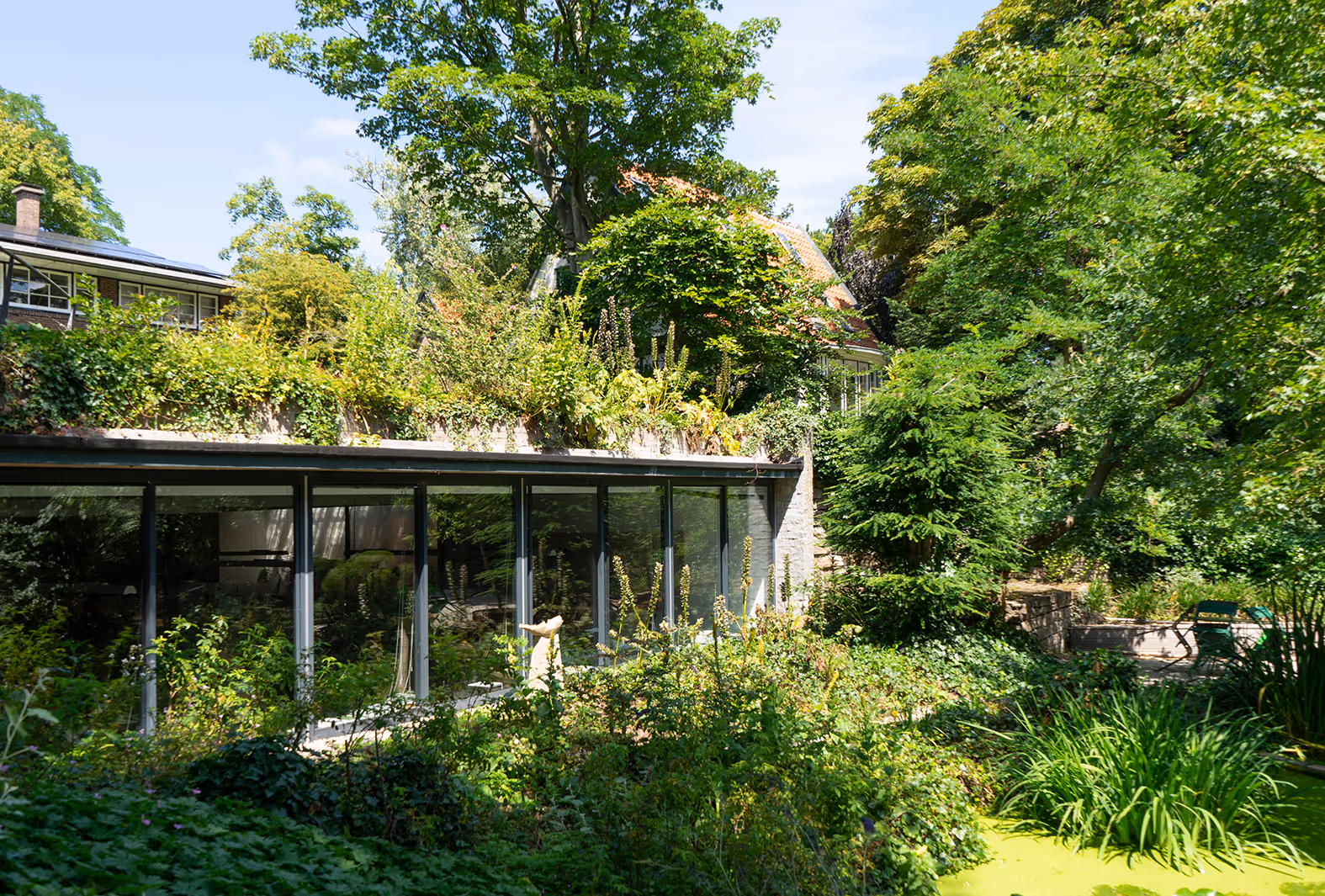 De woningen zijn verdeeld over vier kamers met elk een eigen woningtype en buitenruimtes. De kamers hebben een lage bebouwingsdichtheid en volgen het bestaande slotenpatroon. De buitenruimtes verwijzen naar het oude cultuurlandschap, en bouwen voort op de agrarische functies in het gebied - bossen, weidegronden, moestuinen en boomgaarden. Ook de nieuwe bebouwing bouwt voort op lokale historische voorbeelden: de lintbebouwing langs de dijken, boerderijen met stallen en boomgaarden, villa’s omringd door bos, en statige landhuizen met bomenlanen. Dit hebben we vertaald naar de vier verschillende kamers: Het Lint, met geschakelde huizen opgetrokken uit baksteen, ontsloten via een bruggetje; De Boomgaard, met dubbele boerenhuizen met rieten kappen, omringd door fruit- en notenbomen; De Bosrand, met ecologische villa’s in een opgaand broekbos vol berken en wilgen; en Het Landhuis, met appartementen, de eyecatcher van Roosenhorst.