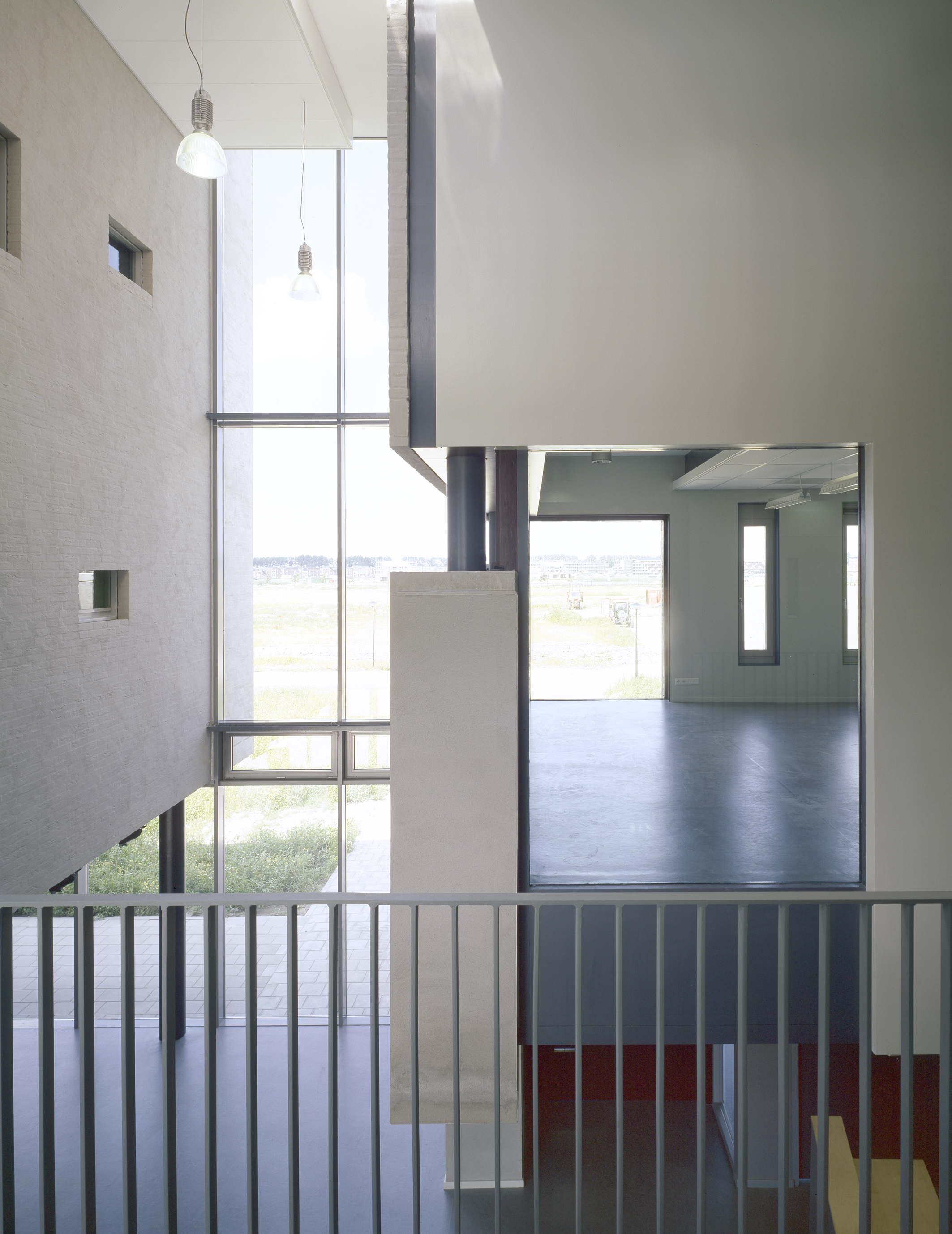 De aula en de speelruimte zijn midden in de school geplaatst en vormen letterlijk en figuurlijk het hart van de organisatie. Het hart verbindt het VMBO, de gymzaal erboven en de over drie verdiepingen verspreide lokalen van de basisschool op een ruimtelijk interessante en dynamische wijze. Het gebouw in hier ook in grote mate transparant en geeft zicht op het grote groene park.