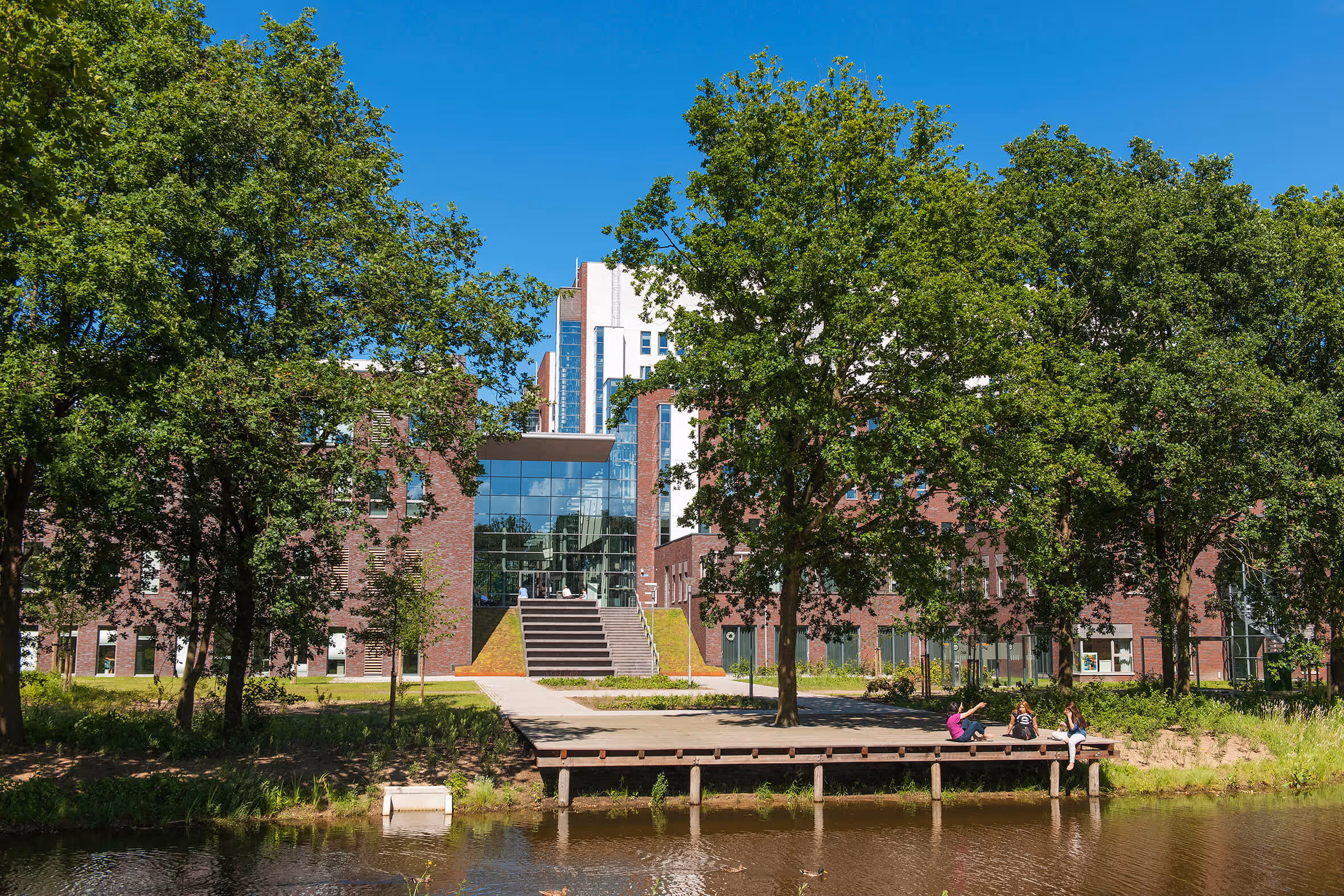 Wie aankomt bij het Meander ziet niet de gebruikelijke zee aan auto’s of parkeergarages, maar een gebouw dat omringt wordt door de natuur. Dat komt omdat het parkeren in de terp, op maaiveldniveau, is opgelost; zo maken we ruimte voor de natuur en het welbevinden van mensen.