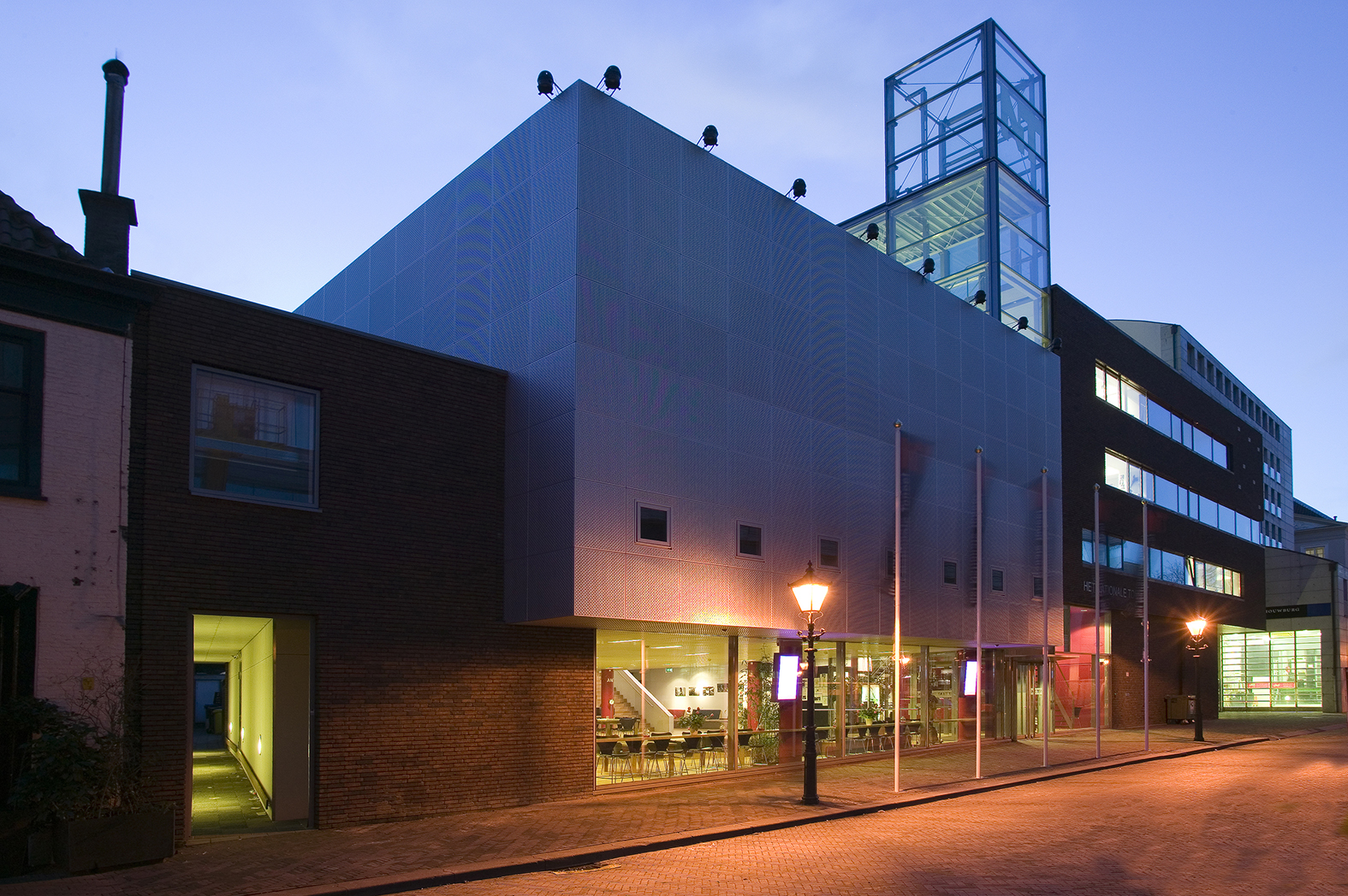 De gevel maakt het gebouw bijzonder en tegelijkertijd deel van de omgeving. De gele, zachte steen, die ambachtelijk is gemetseld, sluit aan bij de materialisering van de omringende gebouwen, waaronder de naastgelegen bassischool. Een combinatie van horizontale en verticale banen in verschillende metselwerkverbanden zorgt voor een heldere gevelindeling. Voor de te openen ramen zijn geperforeerde panelen geplaatst. Deze opengewerkte vlakken geven het gebouw ook ‘s avonds, wanneer het licht er van binnenuit doorheen valt, een bijzondere uitstraling.